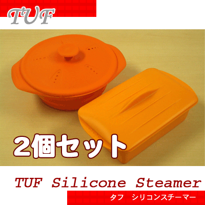 (TUF)タフ シリコンスチーマー丸型and角型セット 4人用?1人用シリコン調理器具シリコン蒸鍋シリコン蒸し器シリコン鍋電子レンジ調理器具